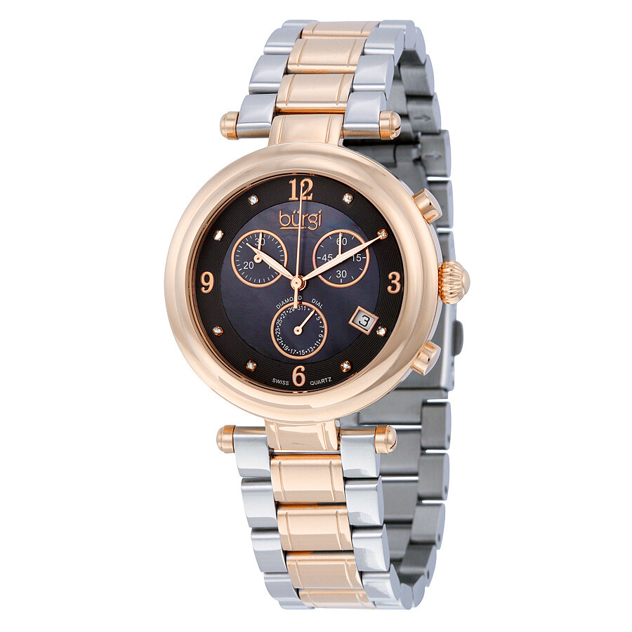 Diamond Quartz Crystal Black Mother of Pearl Dial Ladies Watch