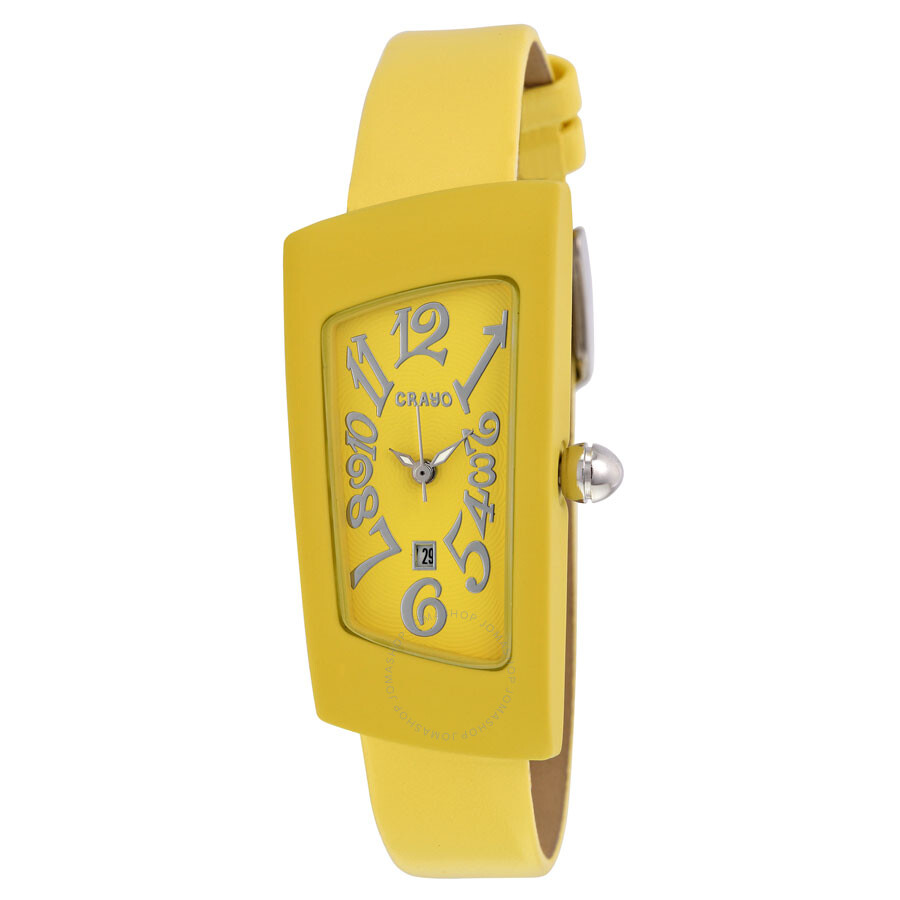 Angles Yellow Dial Yellow Leather Ladies Watch
