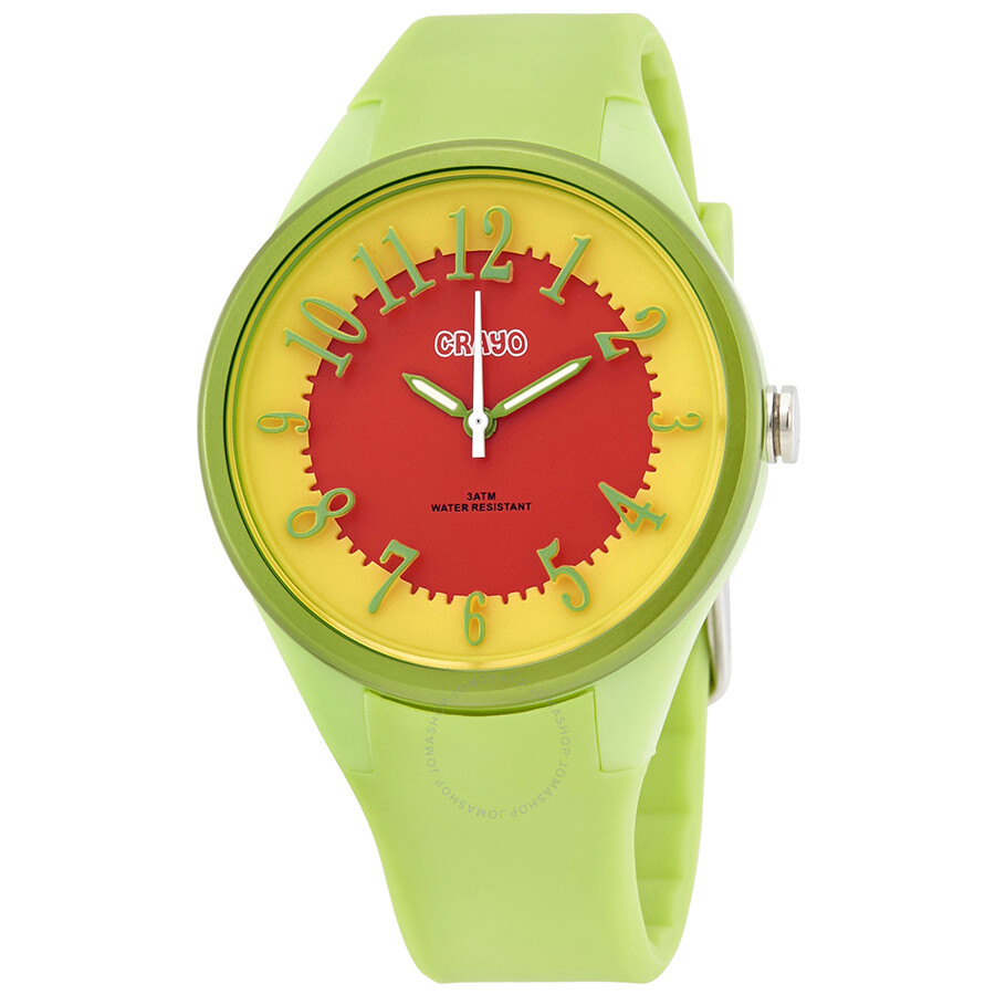 Burst Orange and Yellow Dial Green Plastic Ladies Watch