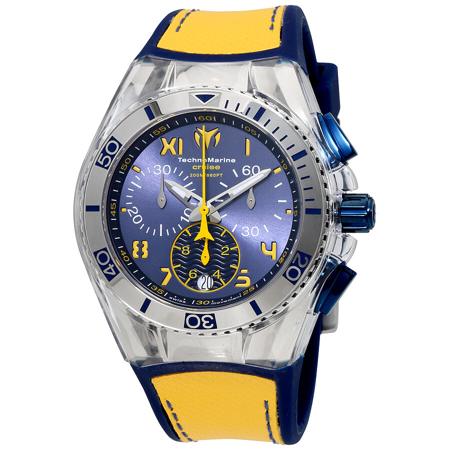 Cruise California Chronograph Blue Dial Yellow and Blue Canvas Men's Watch 115070